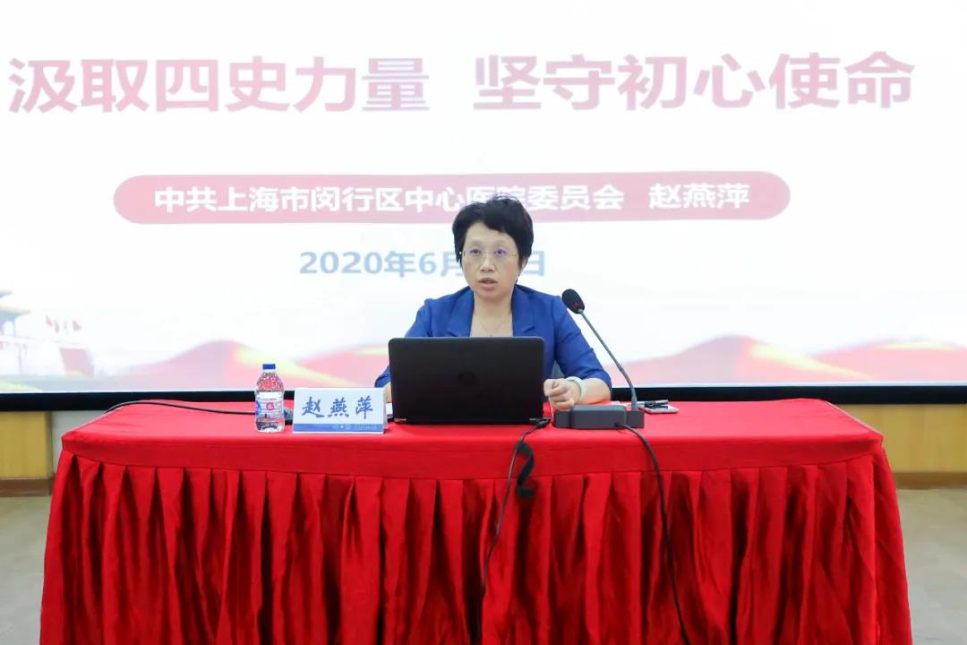 2020年6月24日,闵行区中心医院党委开展“四史”学习教育专题党课,党课由党委书记赵燕萍主讲。医院党政领导班子成员、中层干部、全体党员、入党积极分子、挂职锻炼青年骨干和各民主党派代表等参加活动。党课以《汲取四史力量 坚守初心使命》为题,从“四史”学习教育的要求和任务、改革开放史与医改之路、在“四史”学习教育中汲取力量等三个方面,为与会人员上了一堂生动党课。赵燕萍书记强调,闵行医院要进一步坚定政治立场,增强政治定力,严守党的纪律,在思想上、行动上始终与习近平同志为总书记的党中央保持高度一致,以“四史”学习教育为契机,推进医院高质量发展,提升人民群众对医疗服务的获得感。