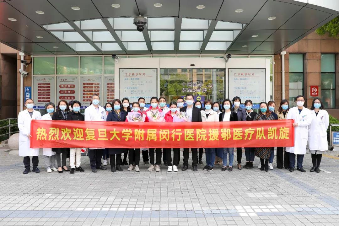 2020年3月31日,复旦大学附属闵行医院增援上海市第一批援鄂医疗队的刘文进、胡兰兰、王宏3位队员,在圆满完成援鄂各项医疗救治任务后返沪。4月14日,她们正式结束14天的休整。闵行医院党委书记赵燕萍,党委委员、副院长宋爱芳,宣传科科长沈文英,护理一党支部书记、护理部主任叶丽萍等前往酒店迎接。