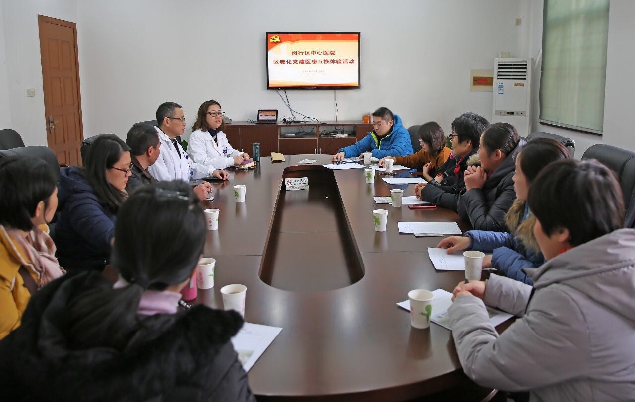 2016年12月29日,进一步构建和谐医患关系,加强医患沟通,闵行区中心医院党委和莘庄镇党委结合区域化党建工作联合开展“医患互换体验”活动,邀请莘庄镇居民区党委、莘松一村、莘松三村和团结花苑3个居委会的11位党员、群众代表等用“暗访”的形式到闵中心体验就诊流程,发现就诊环节和服务中存在的问题,为医院进一步提高服务水平提供建议。