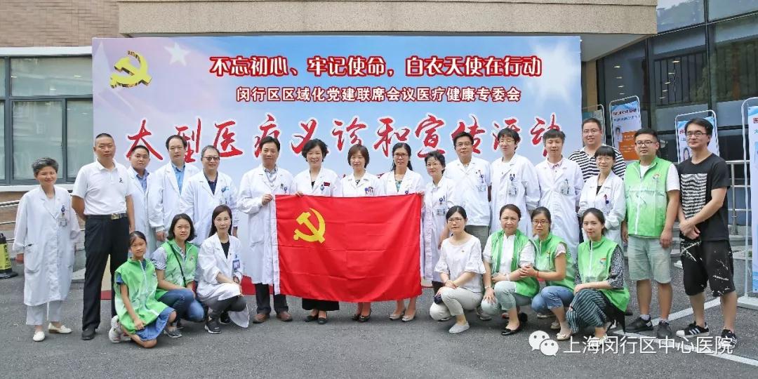 为全面学习贯彻落实党的十九大提出的健康中国战略,以区域化党建联建为平台,“中山医院-闵行”医联体建设为契机,2018年6月25日下午,闵行区中心医院党委等6家党组织在虹桥镇井亭邻里中心联合开展“不忘初心、牢记使命,白衣天使在行动”闵行区区域化党建联席会议医疗健康专委会主题活动暨“医联体党建搭平台 专家社区送健康”大型医疗义诊和宣传活动。