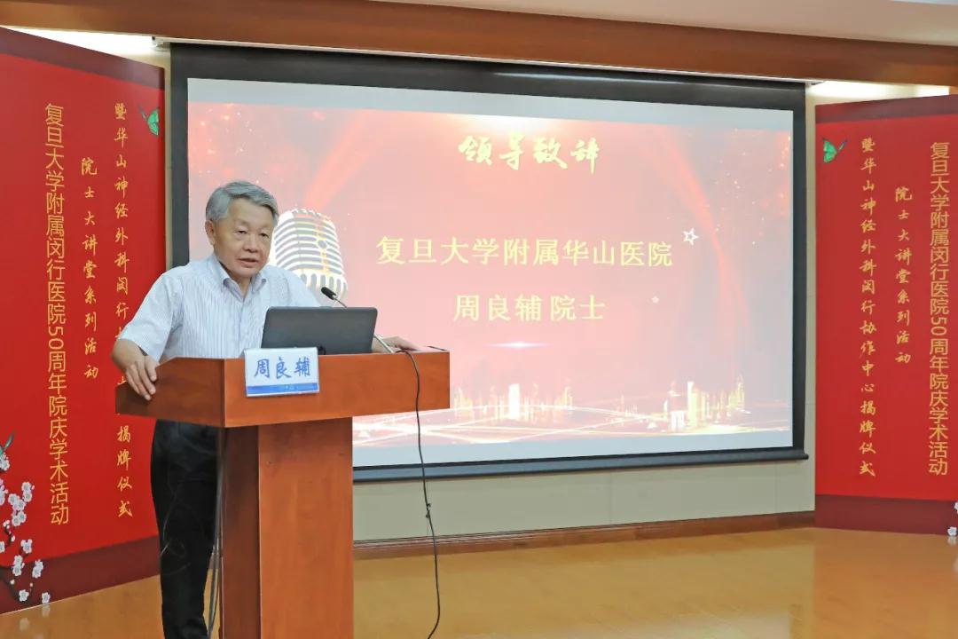 2019年9月12日,复旦大学附属闵行医院举办院士大讲堂系列活动暨华山医院神经外科闵行协作中心揭牌仪式。上海市医疗卫生领域引进的首位院士级领军人才——中国工程院院士、复旦大学附属华山医院神经外科主任、教授、博士生导师周良辅院士出席活动,复旦大学附属华山医院教授胡锦,闵行医院党委书记赵燕萍、执行副院长任宁等党政领导、职能科室负责人及闵行区医学会神经外科学组成员等100余人参加活动。