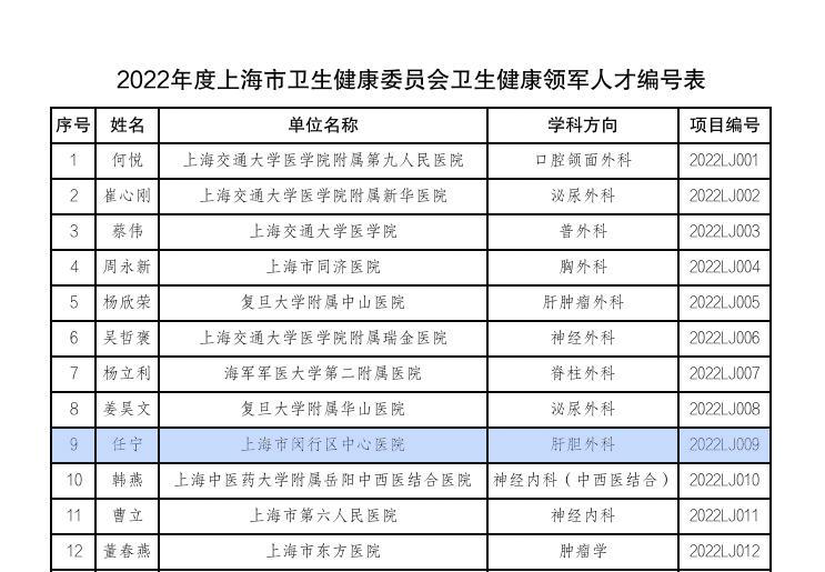 海市卫生健康委员会公布了2022年卫生健康人才立项资助名单。 复旦大学附属闵行医院党委副书记、执行院长、上海市卫健委消化肿瘤全周期监测与精准干预重点实验室主任任宁教授入选第六批医学领军人才。 实验室团队骨干韩冰...[详细]